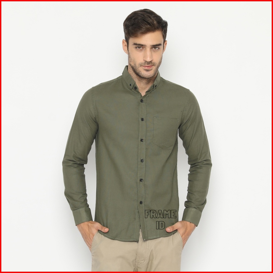 Kemeja Polos Pria Lengan Panjang Warna Hijau Mint