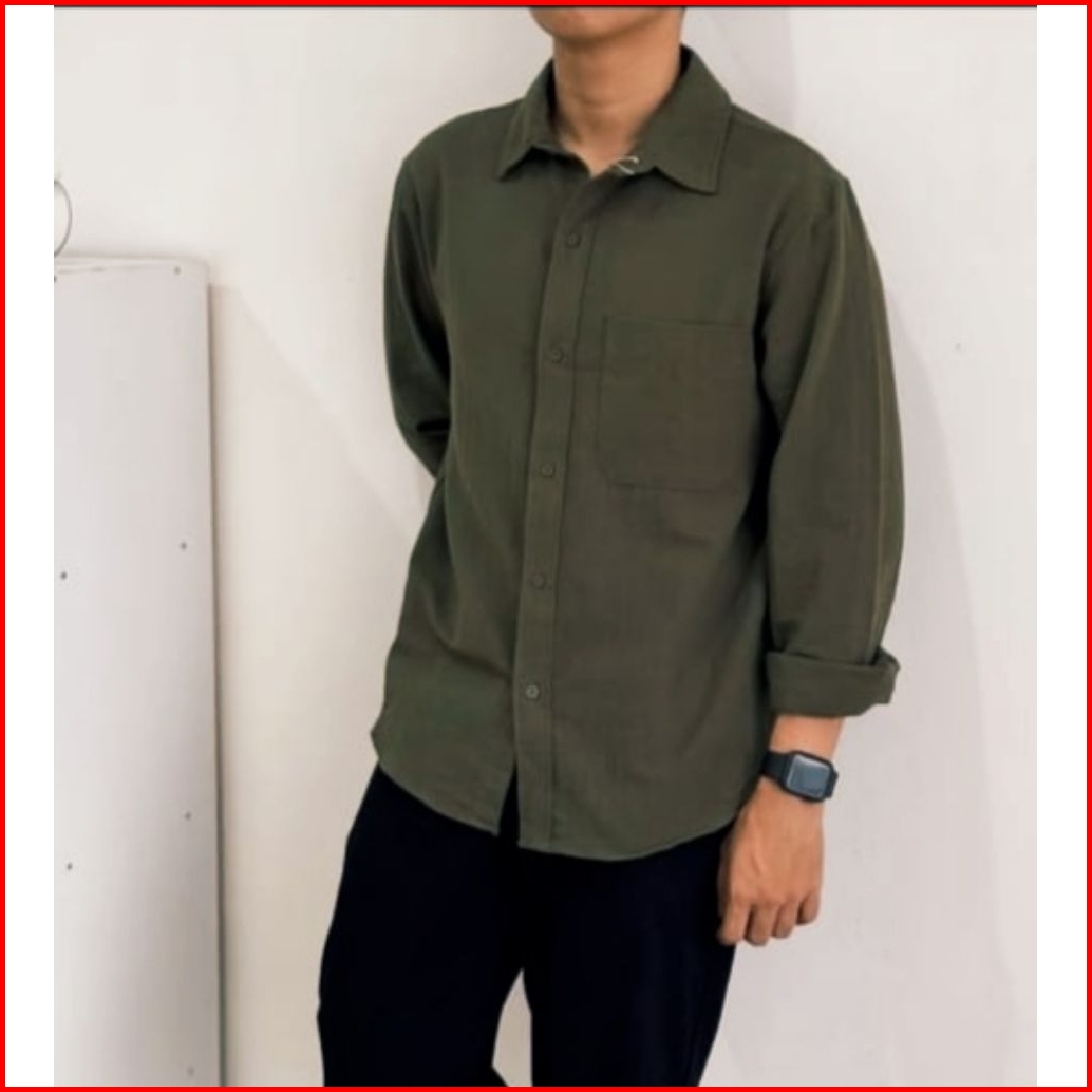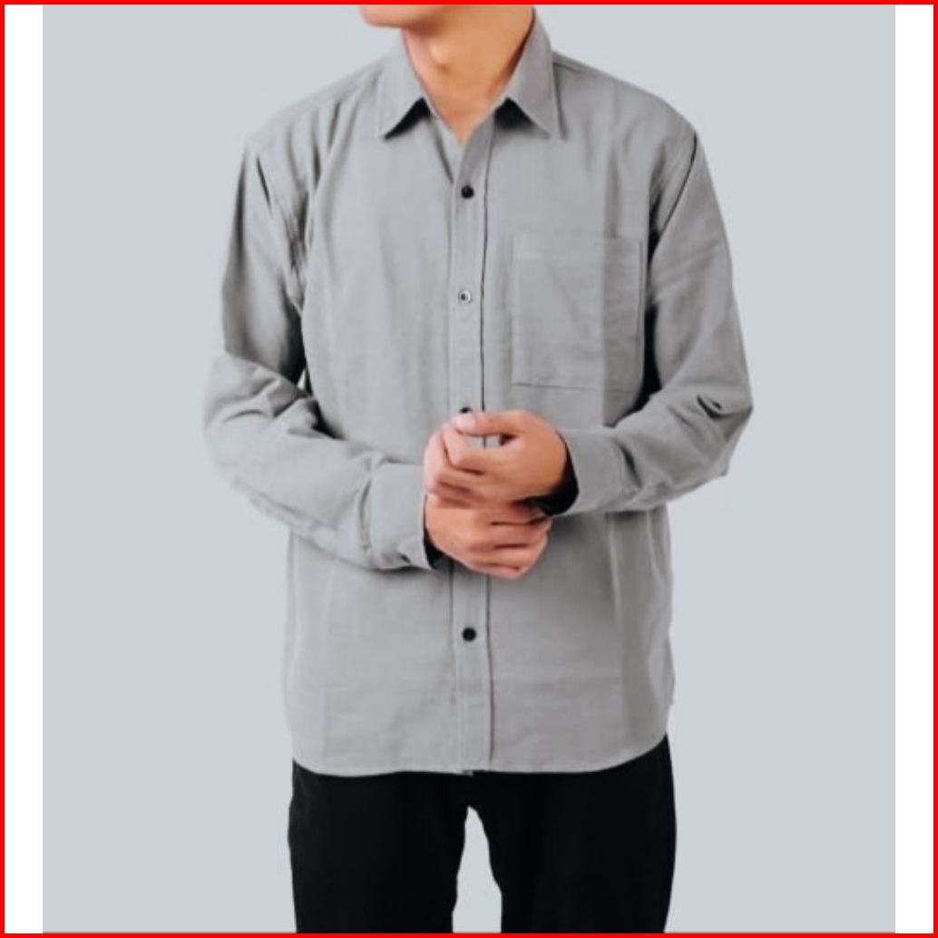 Marka Jingga Kemeja Linen Pria Lengan Panjang Polos Loong Sleve Shirt