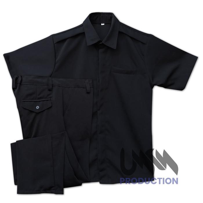 SETELAN SAFARI PASPAMPRES KEMEJA SKURITY SAFARI PASPAMPRES HITAM TANGAN PANJANG/PENDEK - 1 SET PPP PANJANG, M