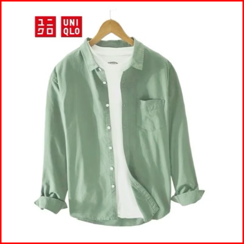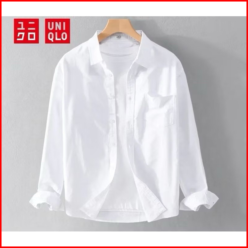 Uniqlo Kemeja Putih Lengan Panjang Pria Casual Slimfit