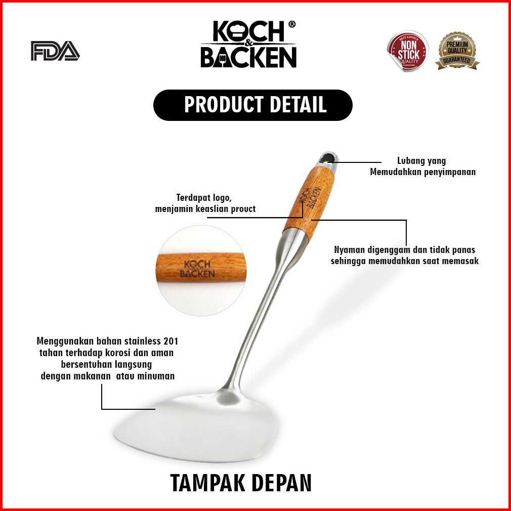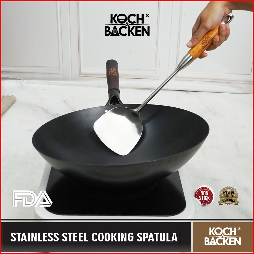 Koch Backen Spatula Sutil Stainless Tebal Sodet Gagang Kayu 38cm