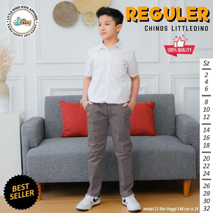 Promo Celana Panjang Anak 2 - 15 Tahun Chinos Reguler Pants By Little Dino - Black 2 Elegan