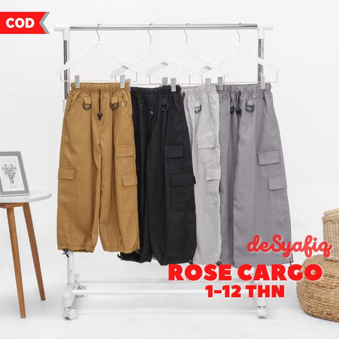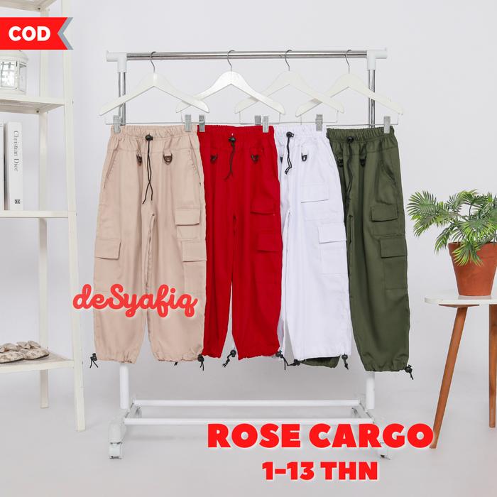 Terlaris Celana Rose Cargo Anak Perempuan Korean Style 1-12 Tahun Katun Drill - Random S (1-2 thn) Elegan