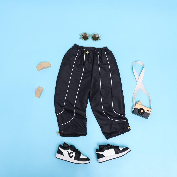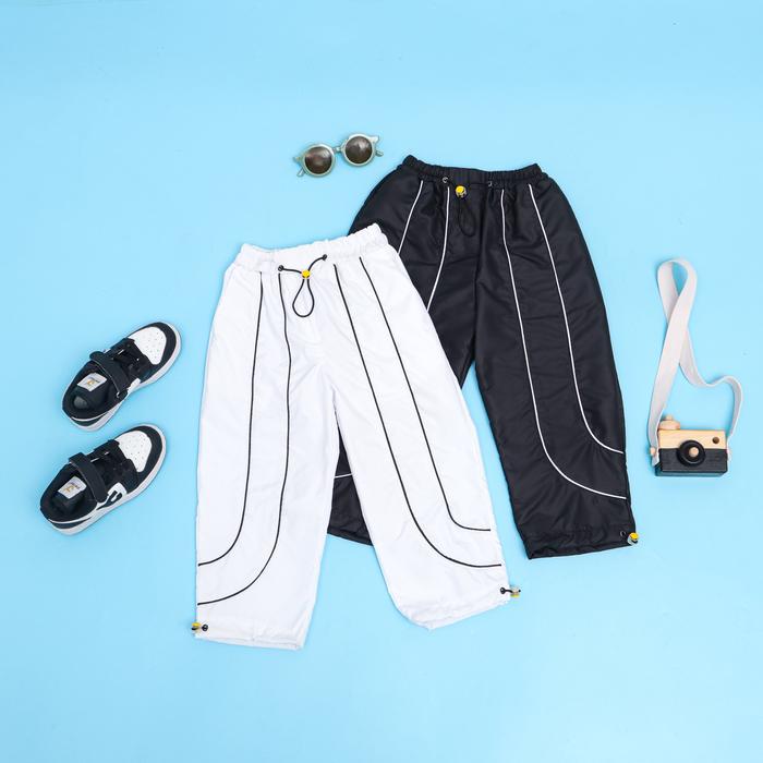 Promo Yameena.Kids Baggy Pants Parachute Celana Panjang Double Stripe Anak Unisex - Hitam S Elegan