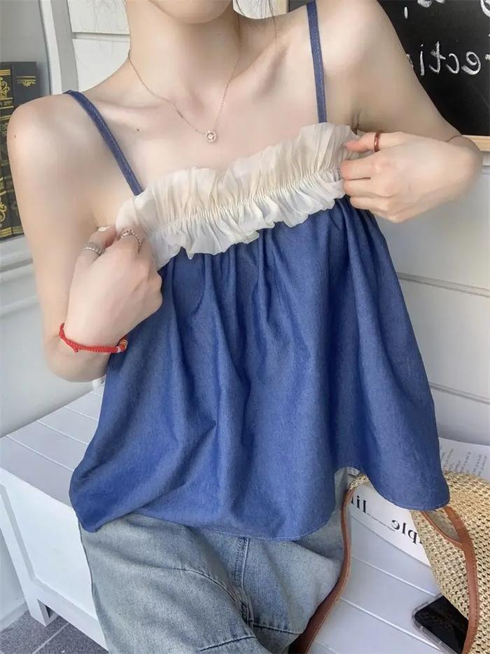 【NEW】Women Camisole Tank Top Sleeveless Ruffle 1806 (S/M/L) - Blue S