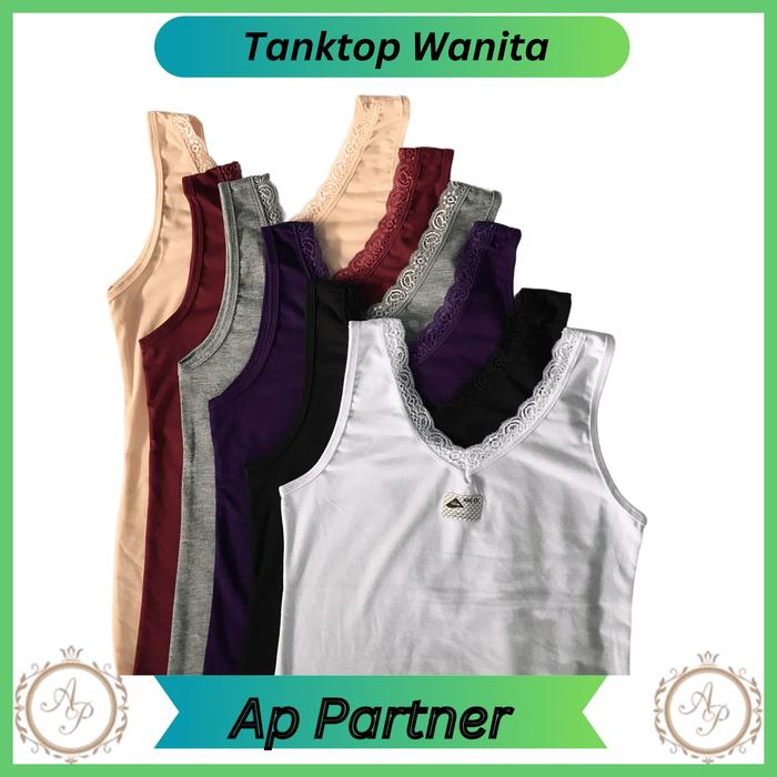 [ 3 Pcs ] LUTTY Tangtop Kaos Dalam Wanita Renda Tali Besar Bahan Katun All Size - ALL SIZE