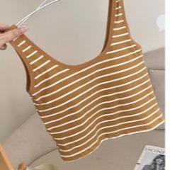 【khaefashion】BR188 Atasan Tanktop Bra Wanita Singlet Motif Garis Salur Crop Pakaian Dalam Santai - Kuning