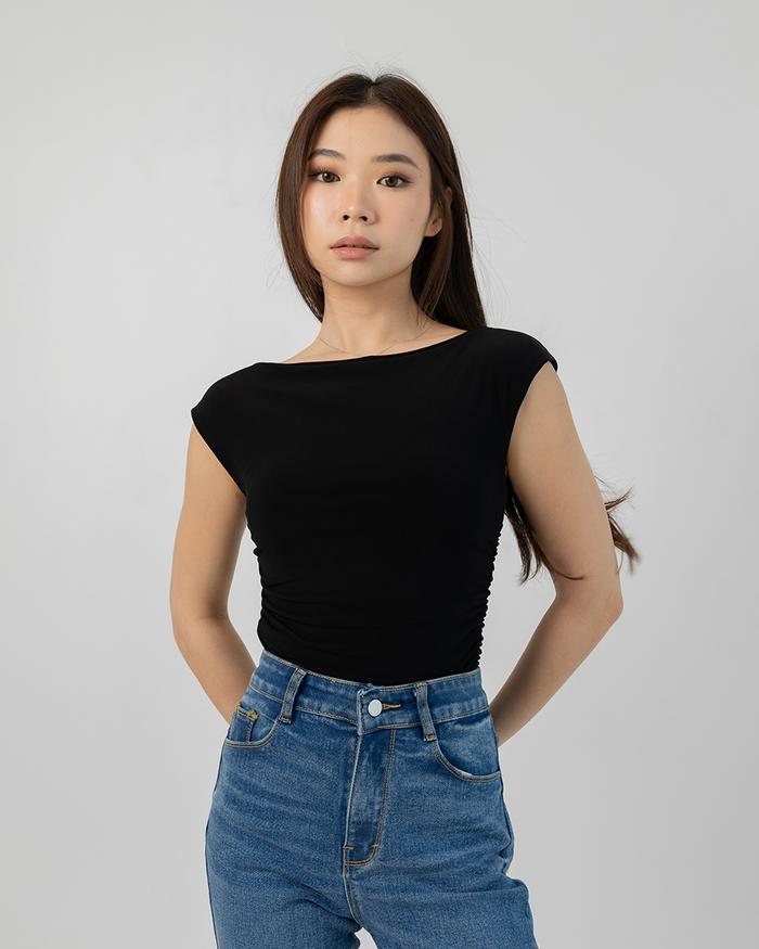 Evertops -1.0 / Mina Ruched Top (Boat Neck) / Atasan Wanita Tanktop - BLACK S