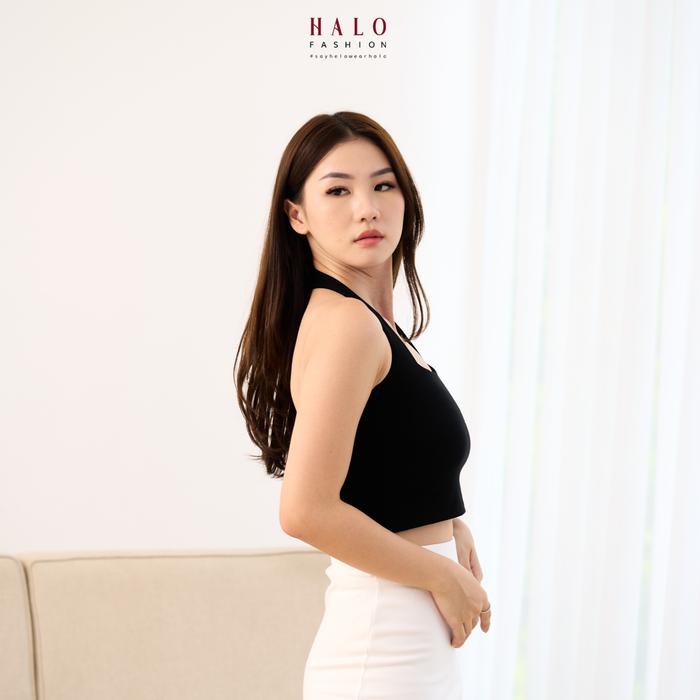 [HaloFashion] Sachy Crop Top Tank Top Halter Top Basic Top Korean Fashion Atasan Wanita Rompi - Black S