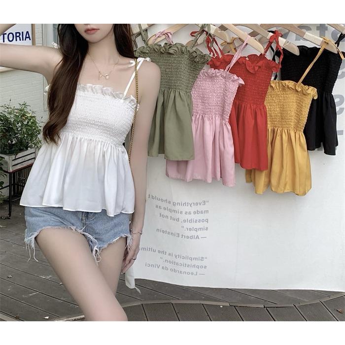 bayar ditempat- Tanktop Wanita Kerutan Sifon Motif Tali ikat (T293) / Tanktop Wanita Terbaru - Hitam (T293)