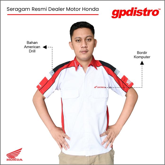 Kemeja Seragam Kerja FLP Dealer Honda Wanita dan Pria - Pria Kerah Merah M