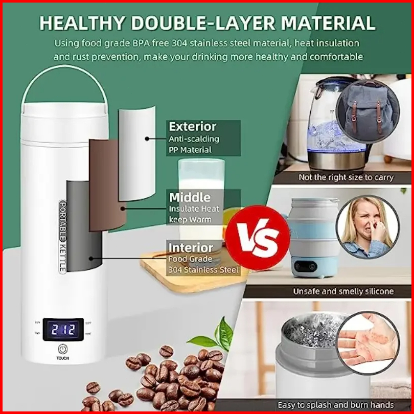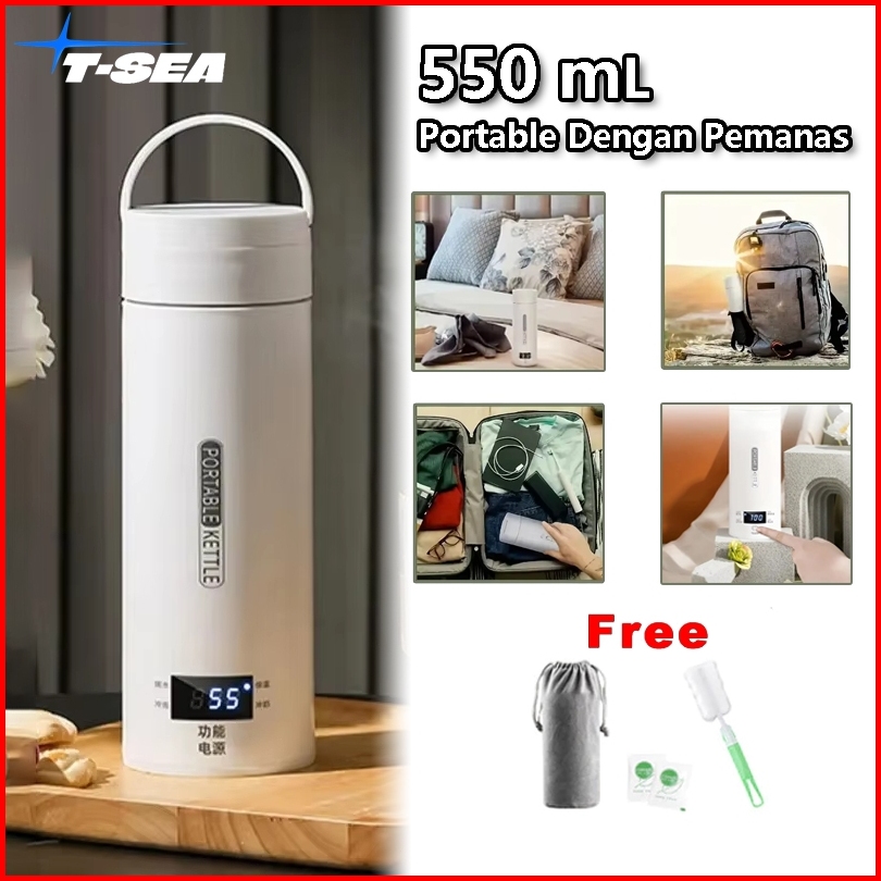 T-sea 500ml Portable Kettle Electric Thermos Pemanas Air Teko Listrik Pengatur Suhu Atur Indikator Dengan Pemanas Baja T