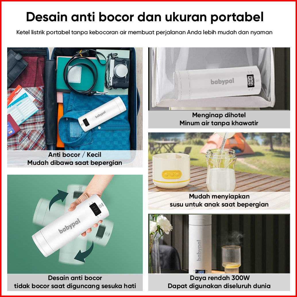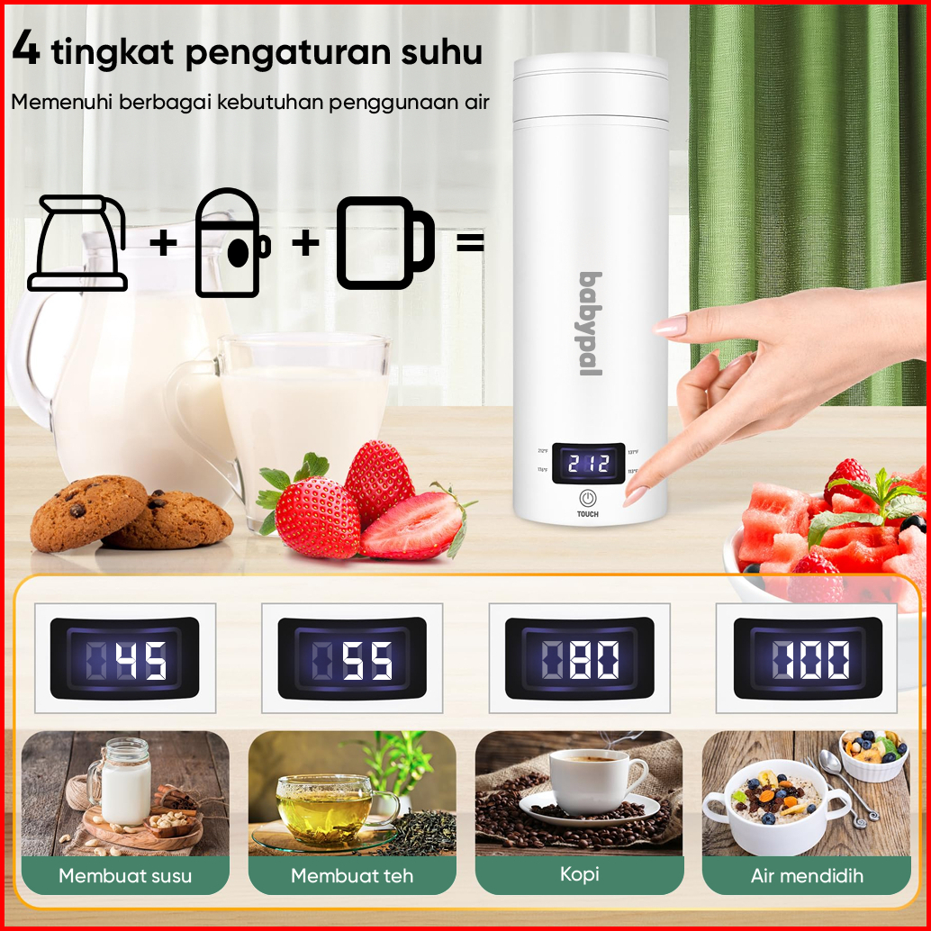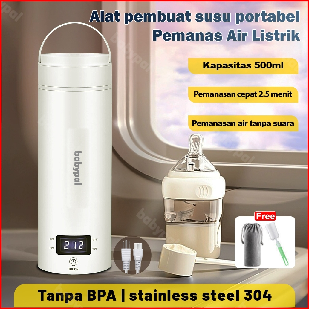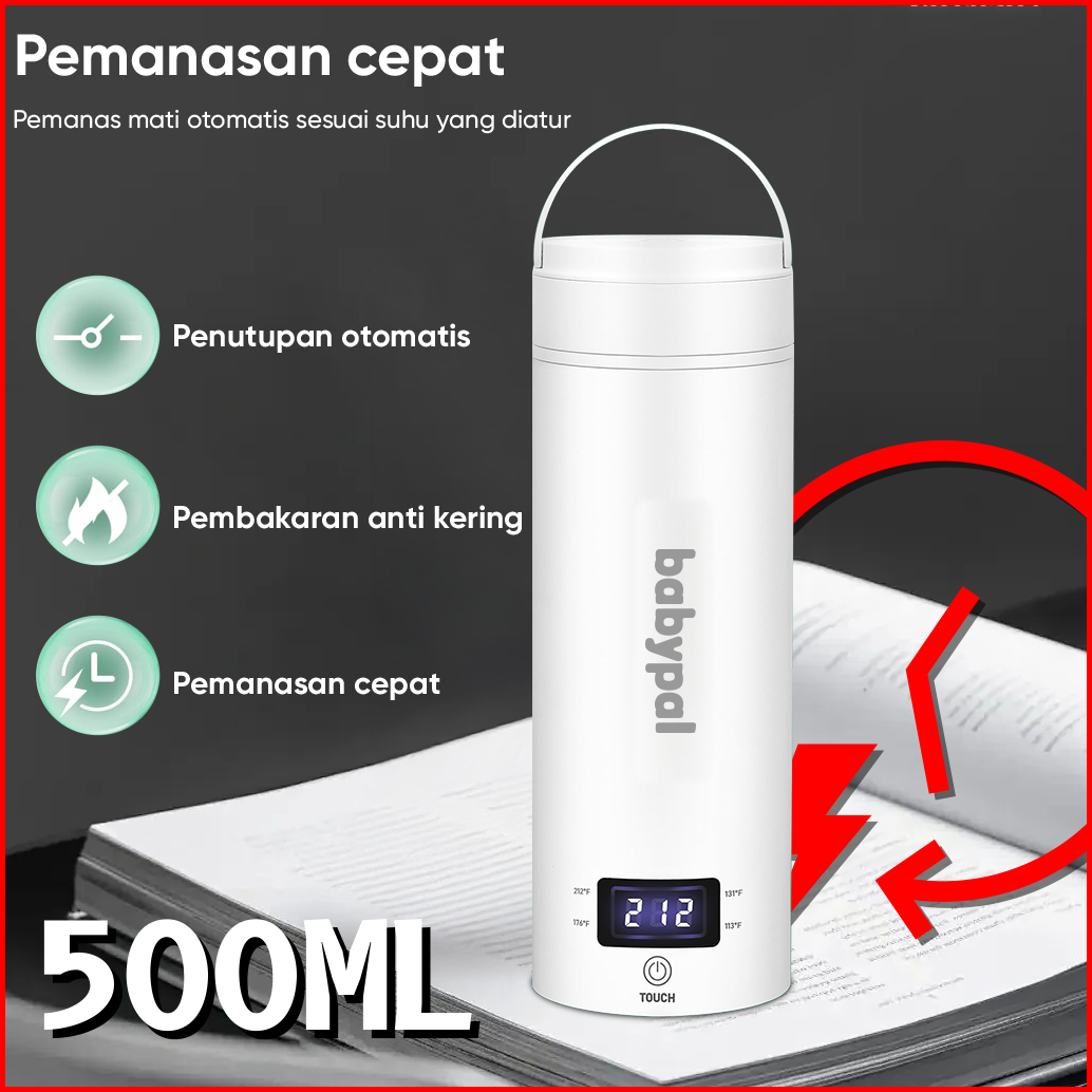 Babypal Pemanas Air Listrik Portable 500ml Led Display Stainless Steel 304 Alat Pembuat Susu Portabel Teko Listrik Peman