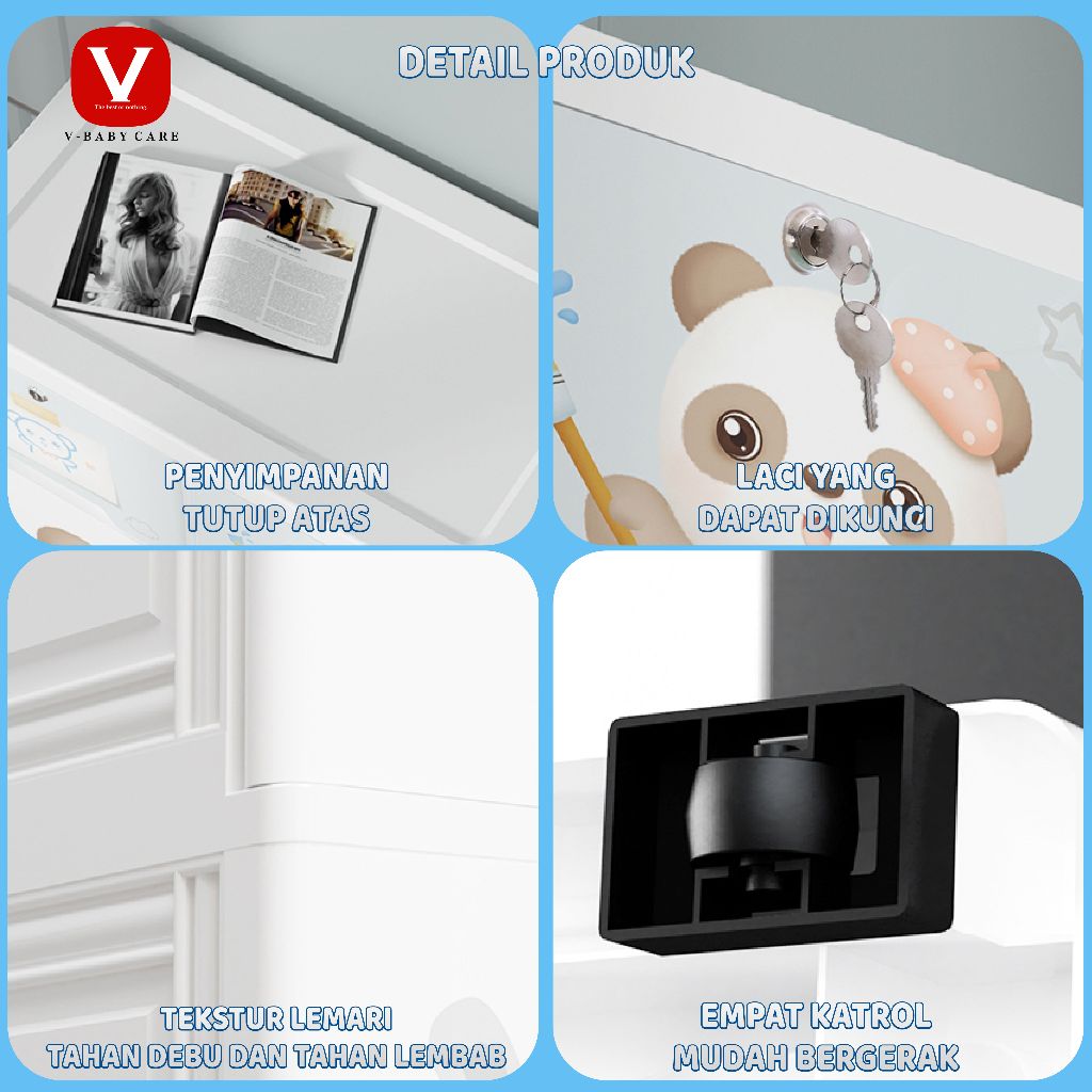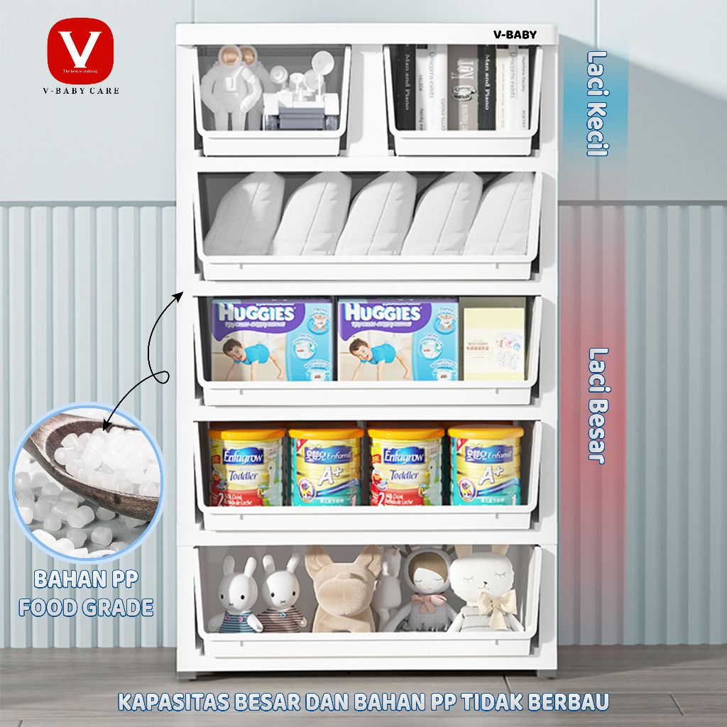 V-BABYCARE memperdalam, menebal Lemari pakaian laci plastik bertingkat el , kotak tempat penyimpanan mainan baby, Loker