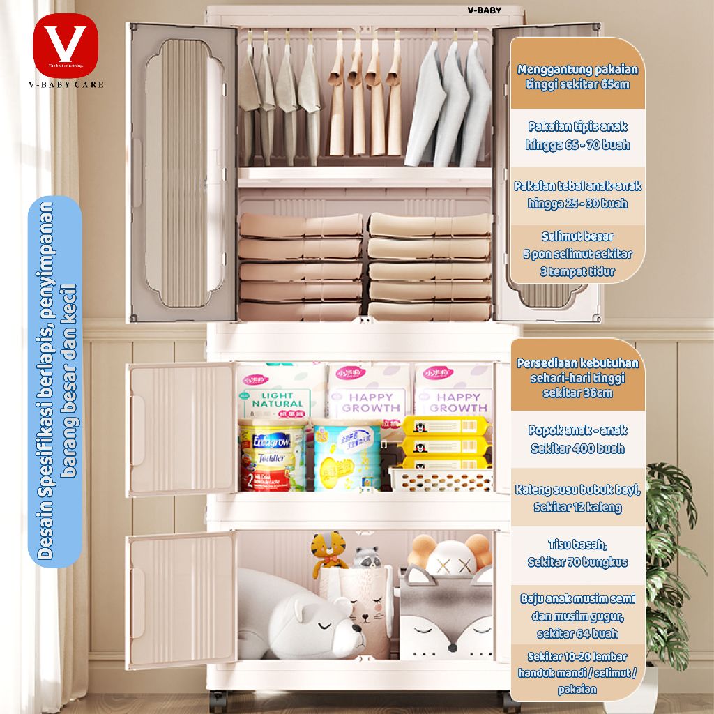 V-BABY CARE Lemari Plastik Lipat/Lemari Plastik Tanpa rakit/Kabinet tebal dapat dilipat Y6211