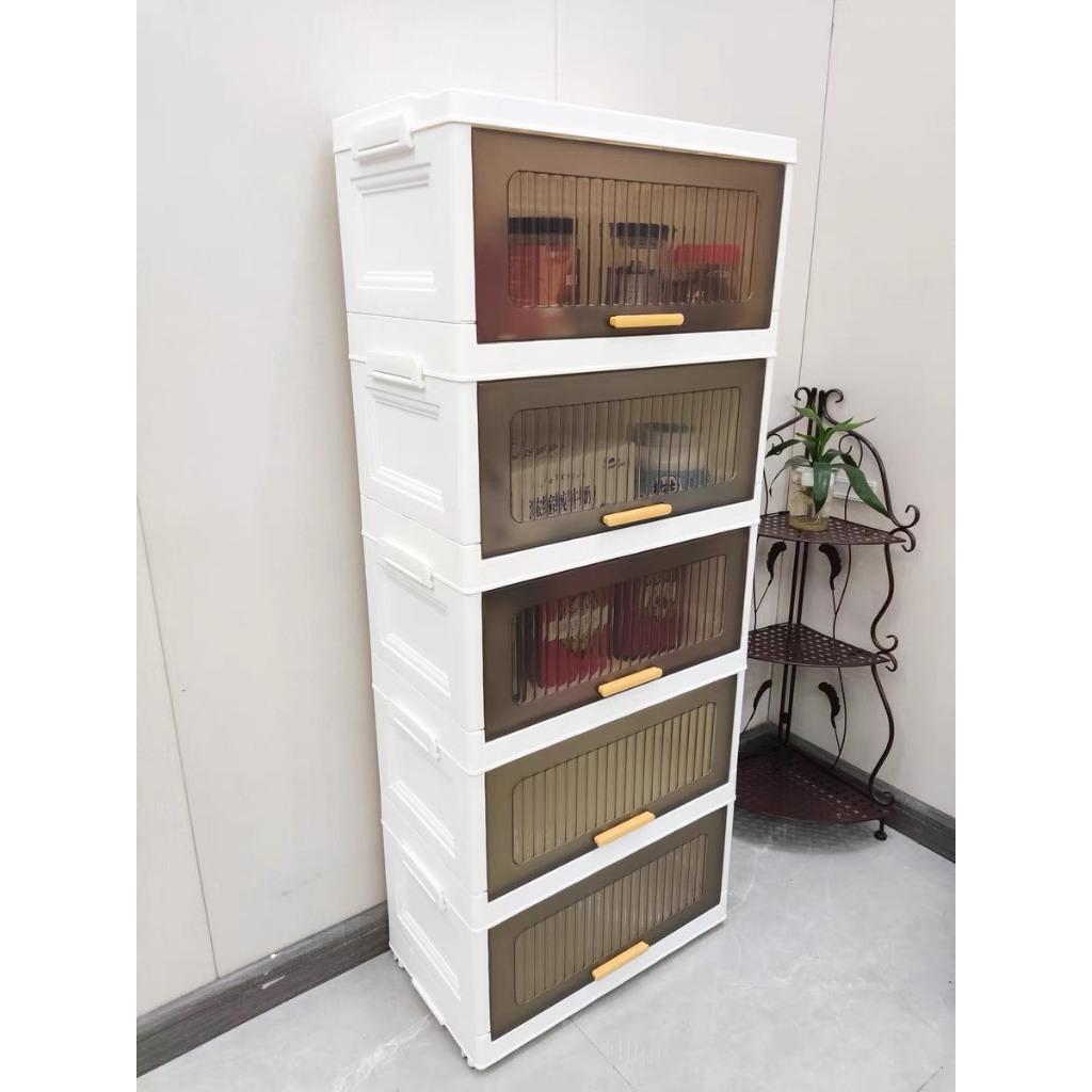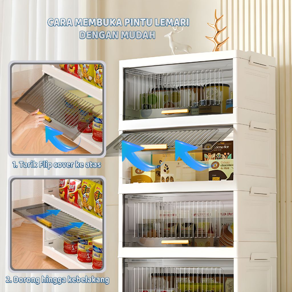 V-BABY CARE (Tidak Perlu Instalasi) Rak Kabinet Susun Lipat/Rak Buku Serbaguna ada Roda/Lemari Plastik Lipat Susun T3