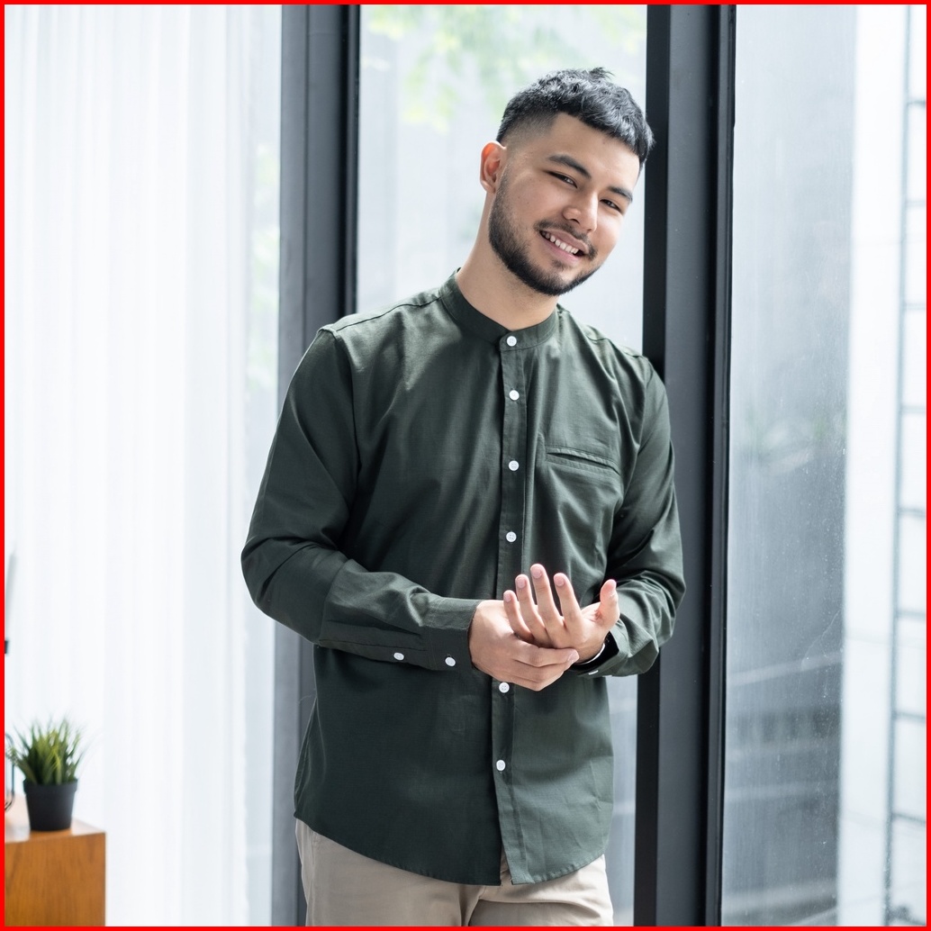 Kemeja Pria Shanghai Lengan Panjang Polos Katun