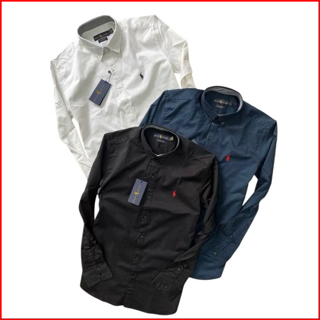 Kemeja Polos Pria Lengan Panjang P.0l0s Premium