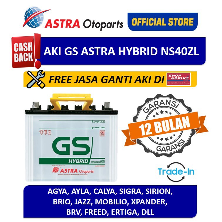 Aki Mobil GS ASTRA Hybrid NS40ZL Alya, Sigra, Brio, Mobilio, Agya, Calya + Free Jasa Ganti
