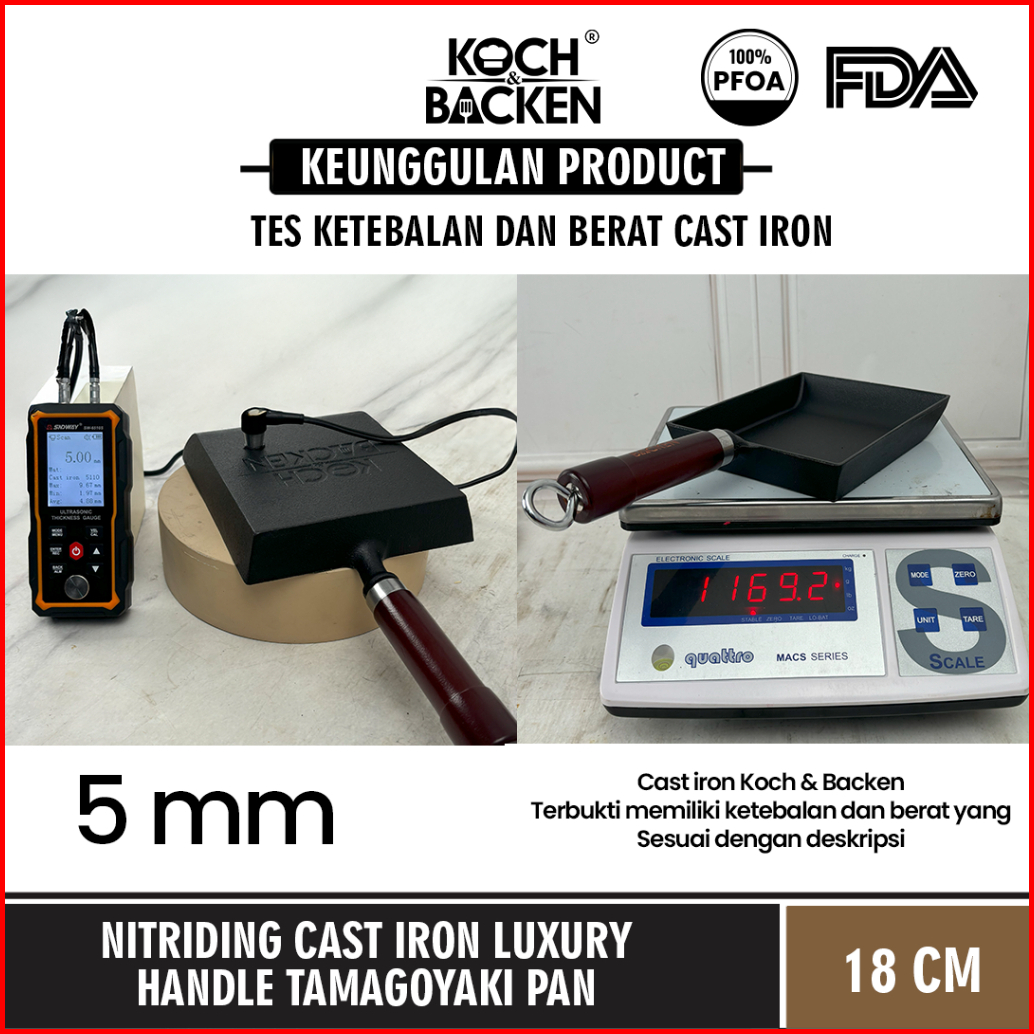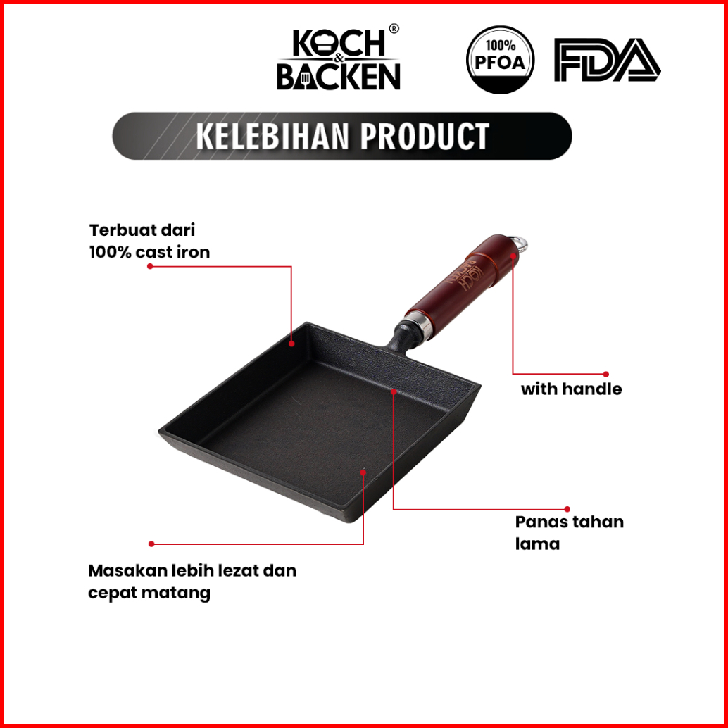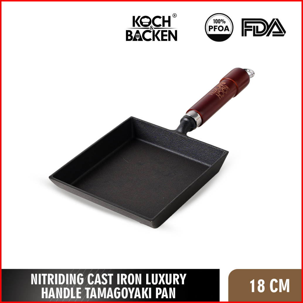 Koch Backen Nitriding Pre-seasoned Cast Iron Tamagoyaki Pan 18cm Luxury Handle Wajan Penggorengan Omelette Besi Cor