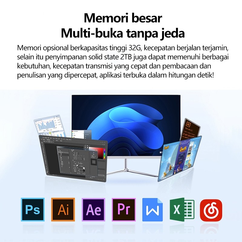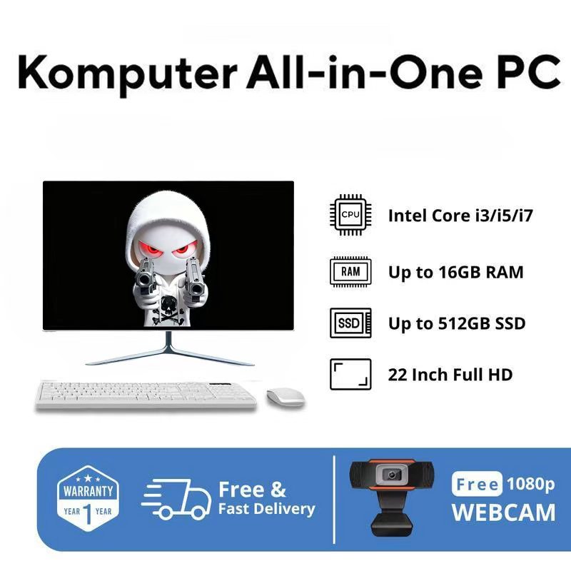 Komputer PC All-in-One Full Set Gaming Baru dengan prosesor, Prosesor Core i3/i5/i7, RAM 8G/16G, SSD 256/512G/1TB, 19/22