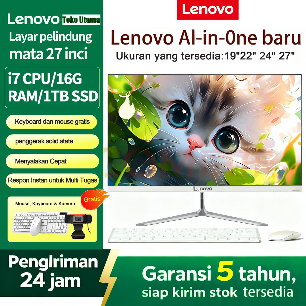 Lenovo Komputer PC All in One Intel Core i3/i5/i7 WiFi/Bluetooth Windows 10/11 Komputer Multifungsi untuk Kantor Sekolah