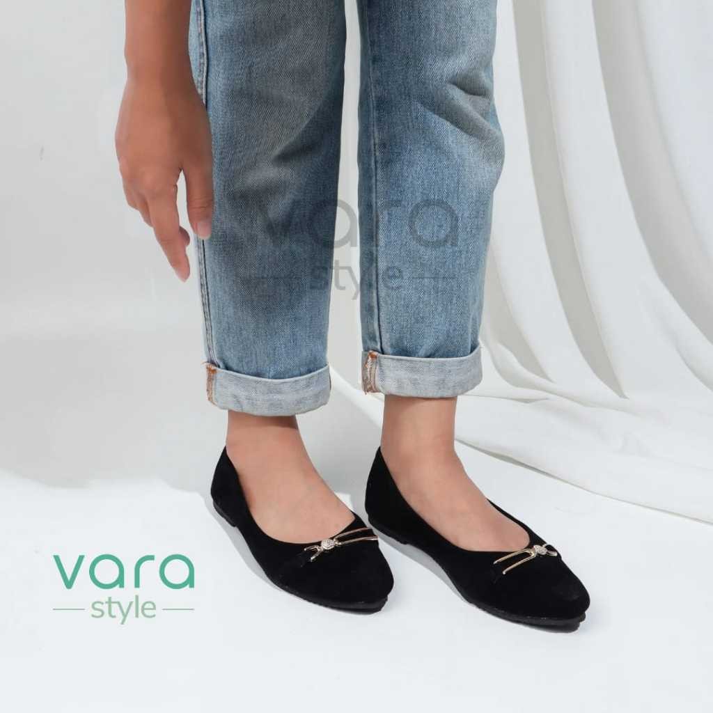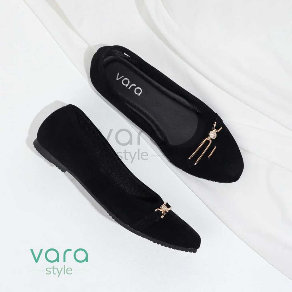 Vara Amira Sepatu Flatshoes Simpel Wanita Hitam Beludru Anti Slip VR1001