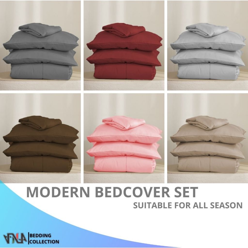 Bedcover Set Polos/Bedcover+Sprei Katun Premium Halus Motif Polos 1 Warna Ukuran Single-Superking