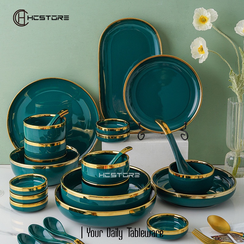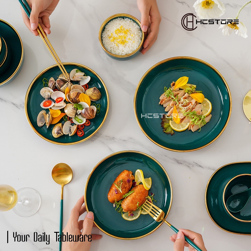 Piring Makan Keramik Hijau Emerald G0.LD Piring Emerald keramik piring saji dan mangkok bakso Tahan Panas Microwave Safe