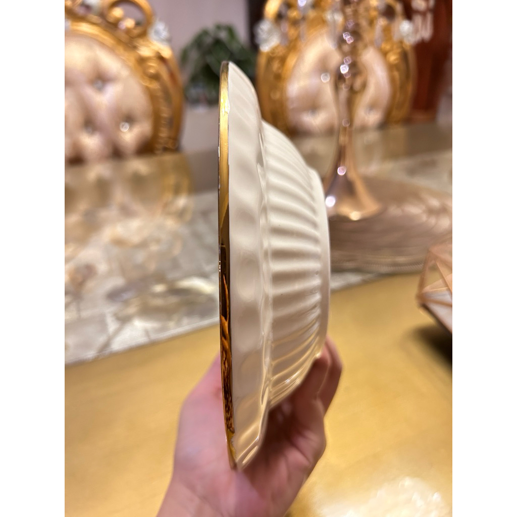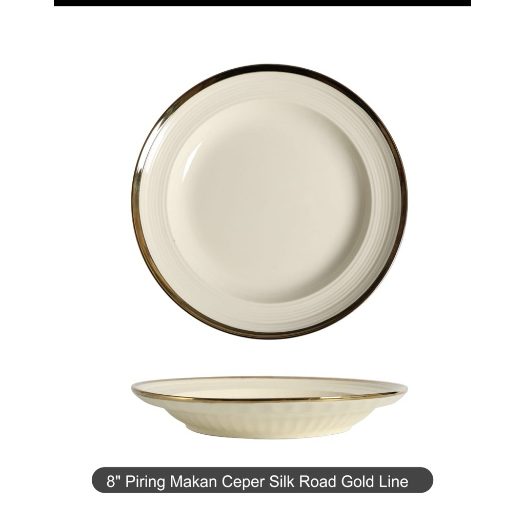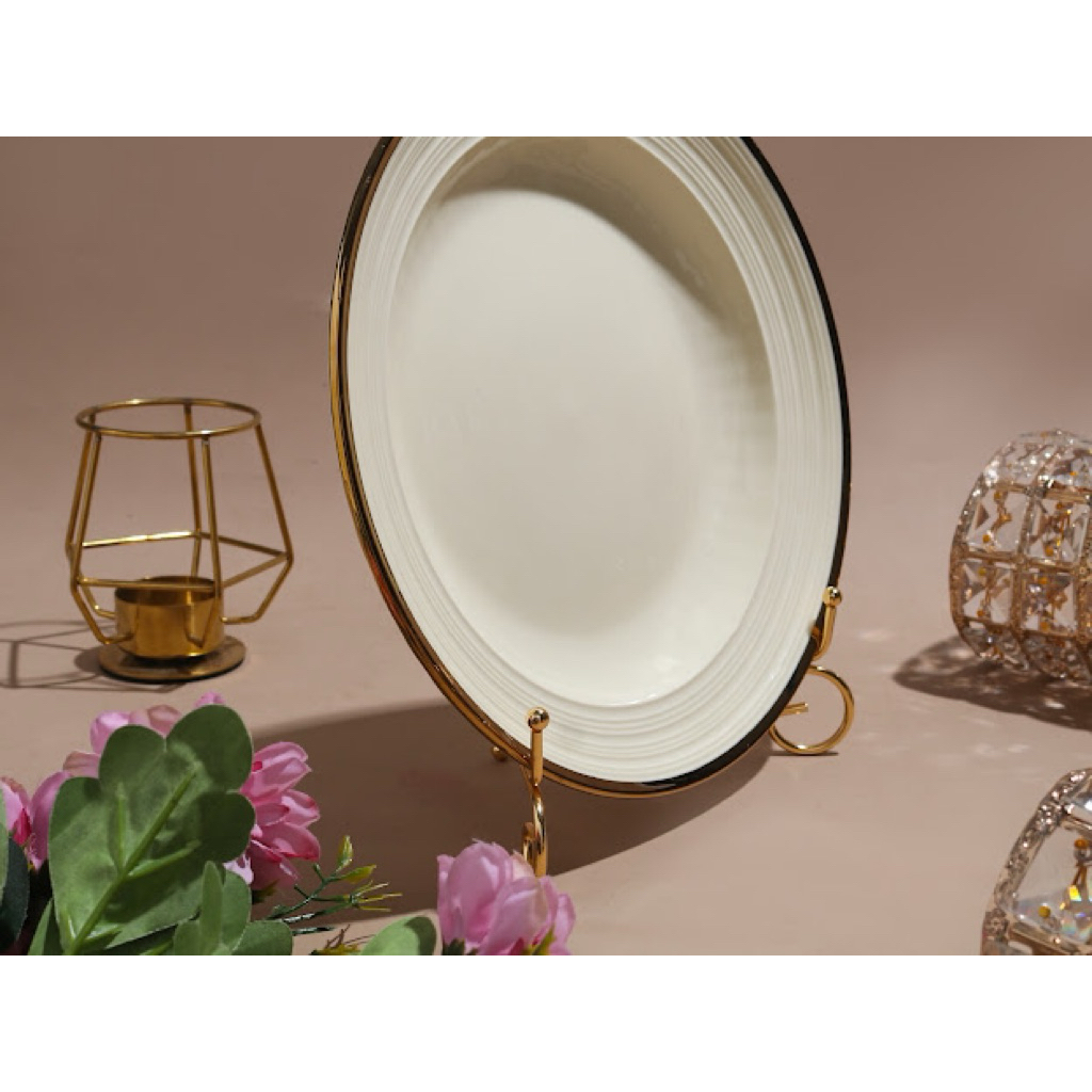 PIRING KERAMIK LIST G0.LD UKURAN 23CM PREMIUM DINNER PLATE AESTHETIC CANTIK WARNA PUTIH GADING MEWAH