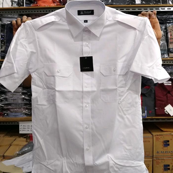 Kemeja Pilot Dinas Alisan Pendek Reguler Putih Kantong Dua Pangkat PNS Seragam Kerja ASN - Putih 6XL 18 1/2