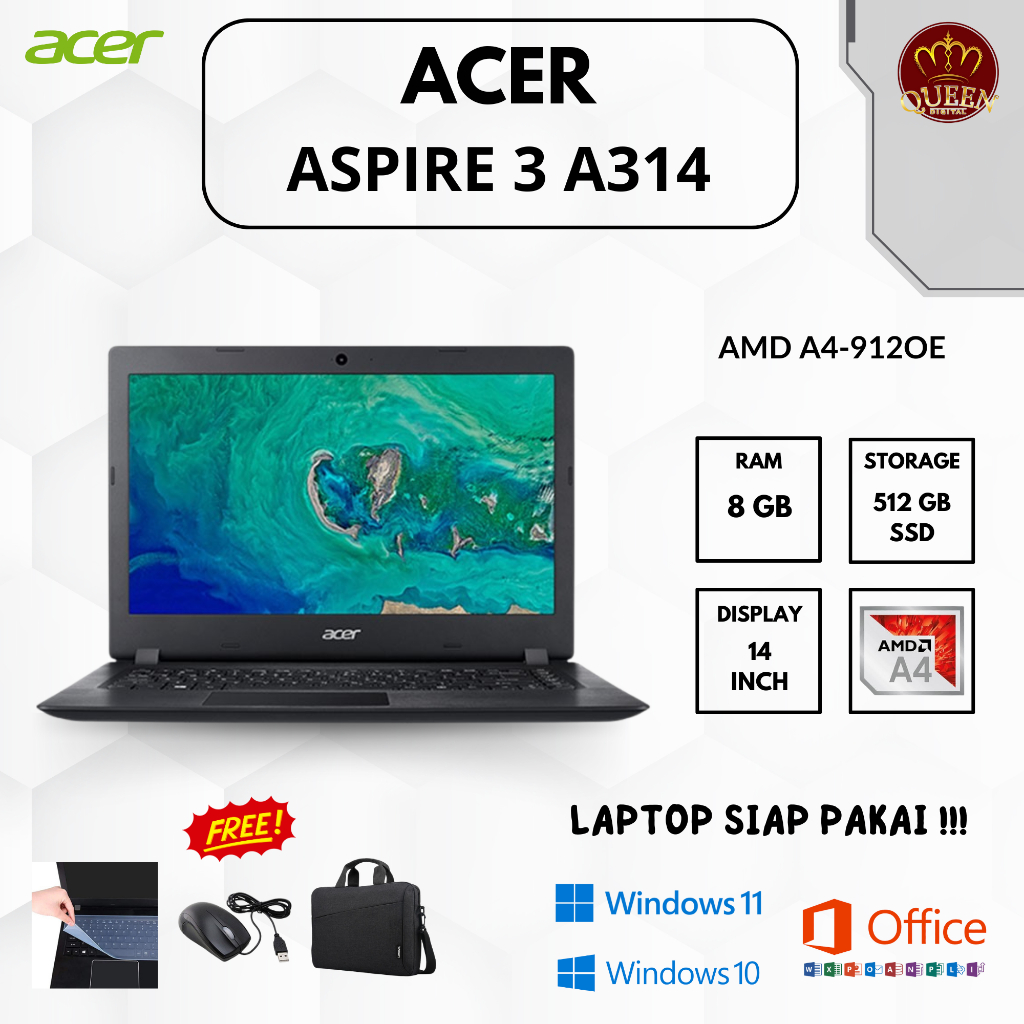 Acer Aspire 3 A314 | Amd A4-9120E | 8Gb Ram | Ssd 512Gb | 14 Inch