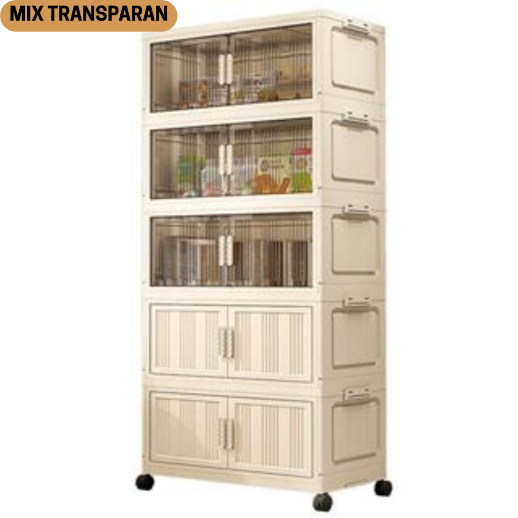 Alby Mart Lemari Susun Plastik Transparan Lemari Pakaian Anak Wardrobe Stripe Doors Laci Baju Bayi