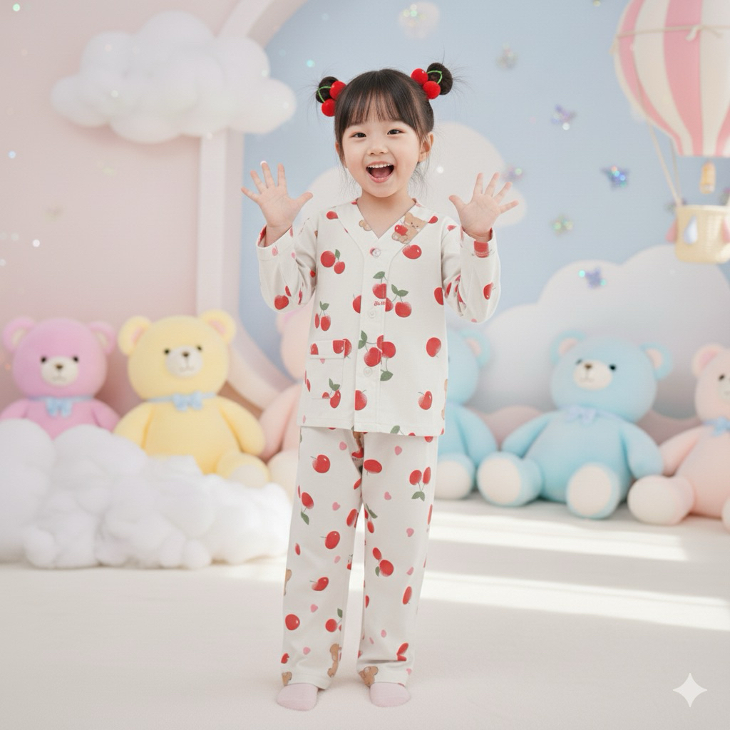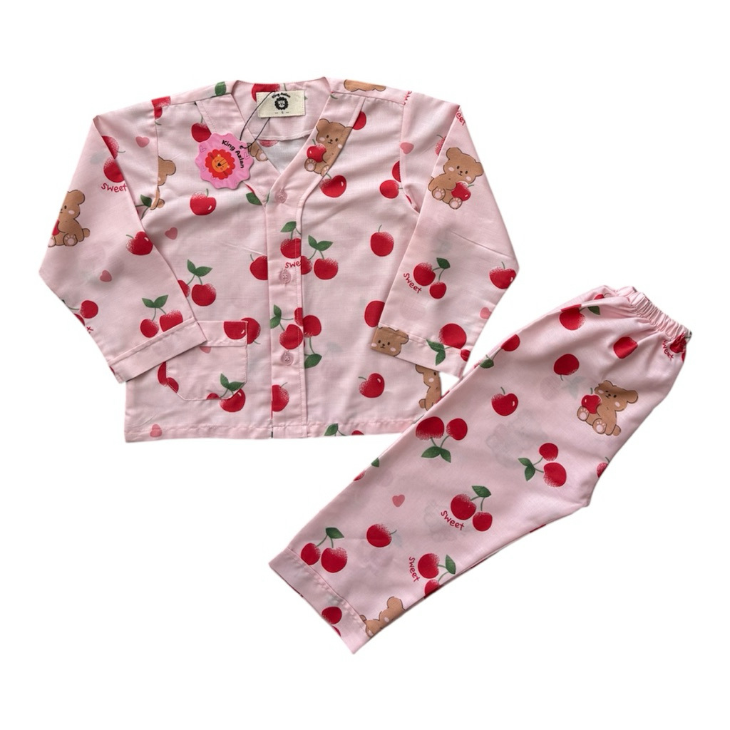 Baju Tidur Anak Perempuan King Azlan Piyama Anak Tangan Panjang Perempuan Motif Cery Bear