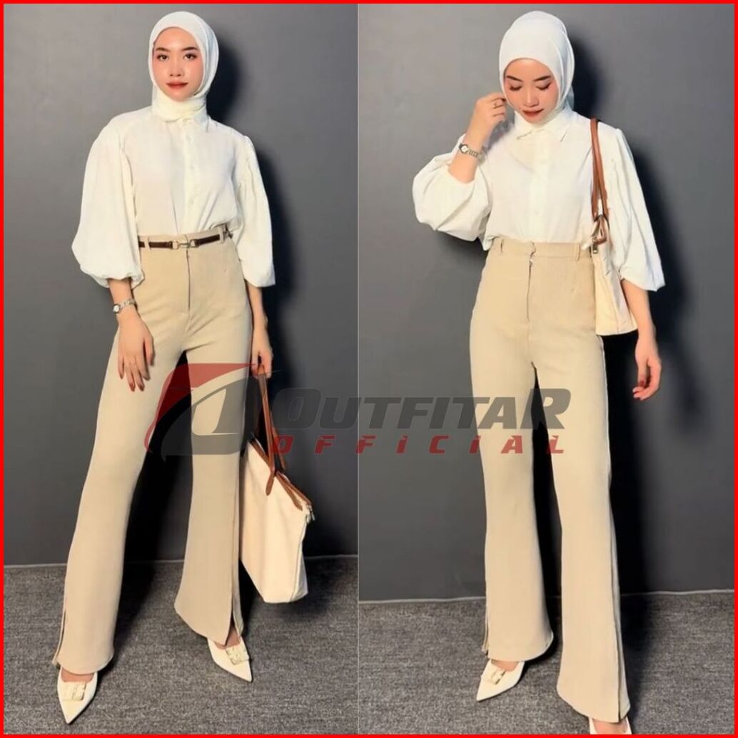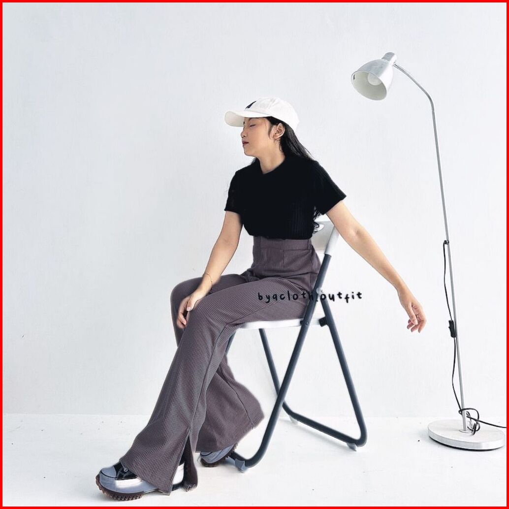 Celana Knit Waffle Slit - Celana Kulot Knit Rib Panjang - Knit Pants - Loose Pants Highwaist Kulot Panjang Basic