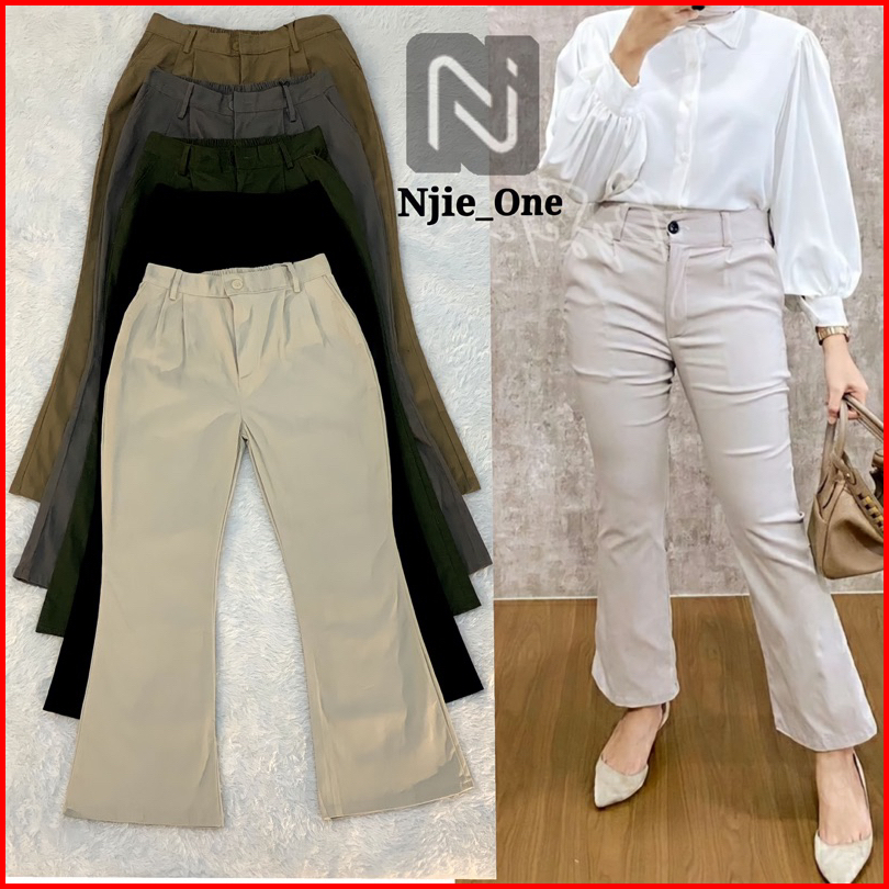 Celana Cutbray Basic Pants Twill Combed Stretch Celana Panjang Wanita Cutbray Wanita Streach Jumbo Big Size