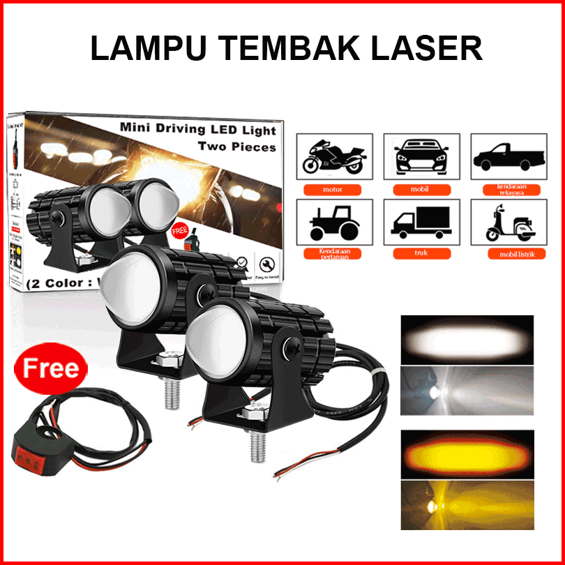 Zacro Original Lampu Tembak Laser 2 Warna High Low Putih Kuning Waterproof Lampu Led Motor Lampu Dekat Kuning Lampu Jauh