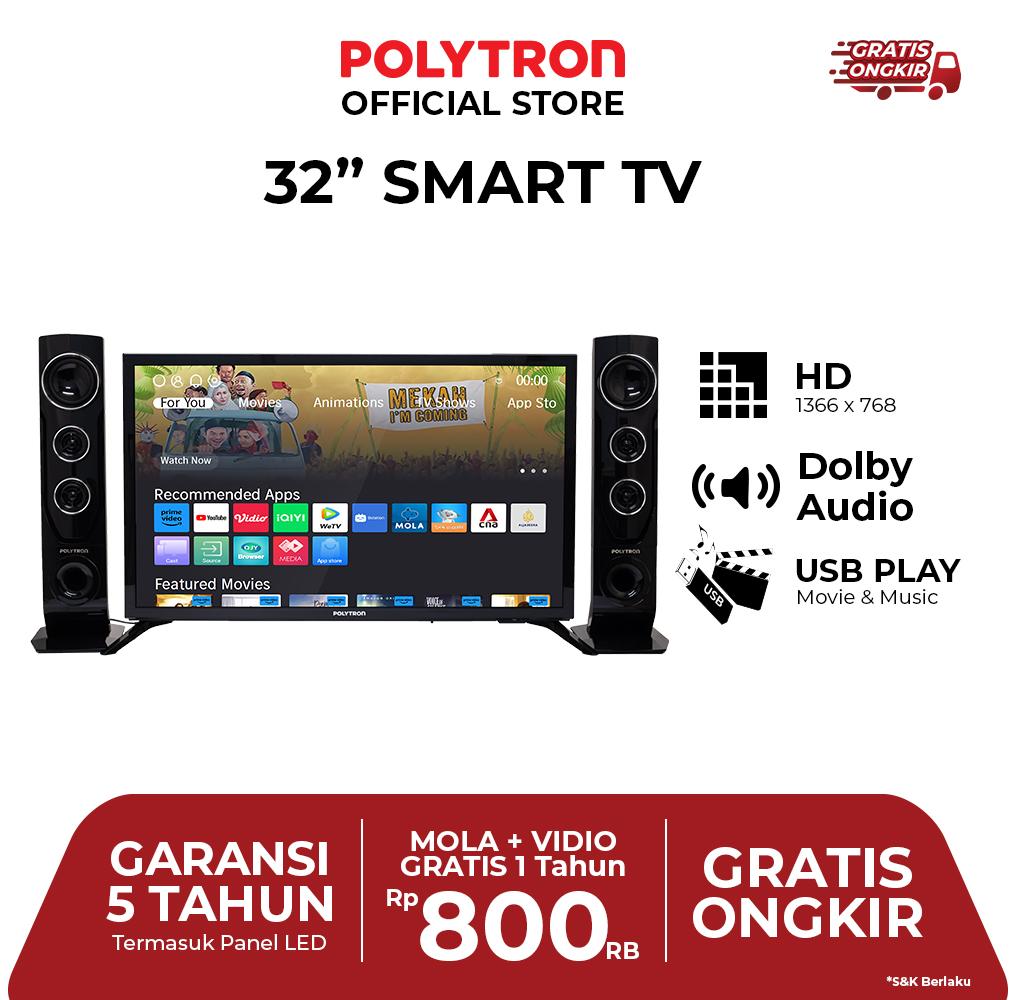 LED TV POLYTRON PLD32TC1865 SMART + SPEAKER SPK-T1032 32" BERGARANSI