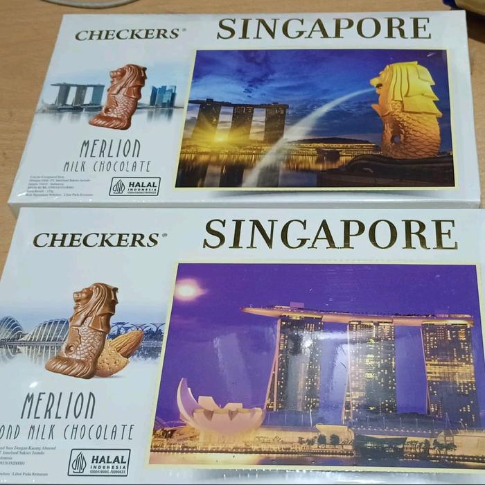 COKLAT CHECKERS 125GR PostCard Merlion Marina Bay Kartu SINGAPORE Chocolate Halal Makanan Cemilan Coklat