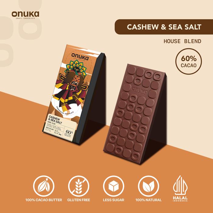 Onuka Cashew & Sea Salt Milk Chocolate Bar / Coklat Asli Rendah Gula - 60g