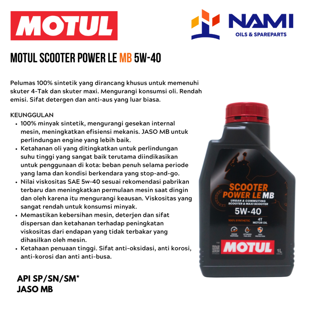*MOTUL SCOOTER POWER LE 5W40 (1L)* Oli Mesin Motor Matic Full Synthetis - Original