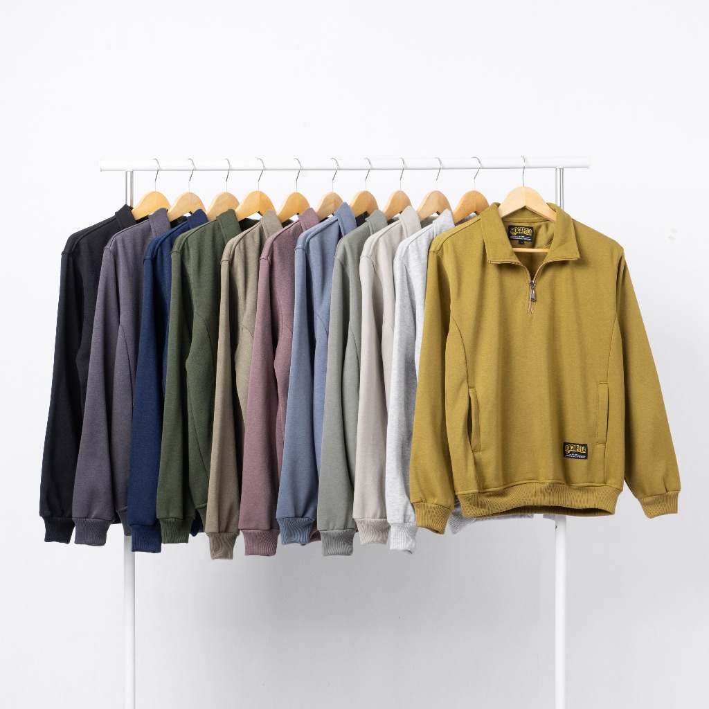 Rocafela HalfZip Pullover Sweater Crewneck Pria Elegan Saku Basic Premium Half Zipper Polos