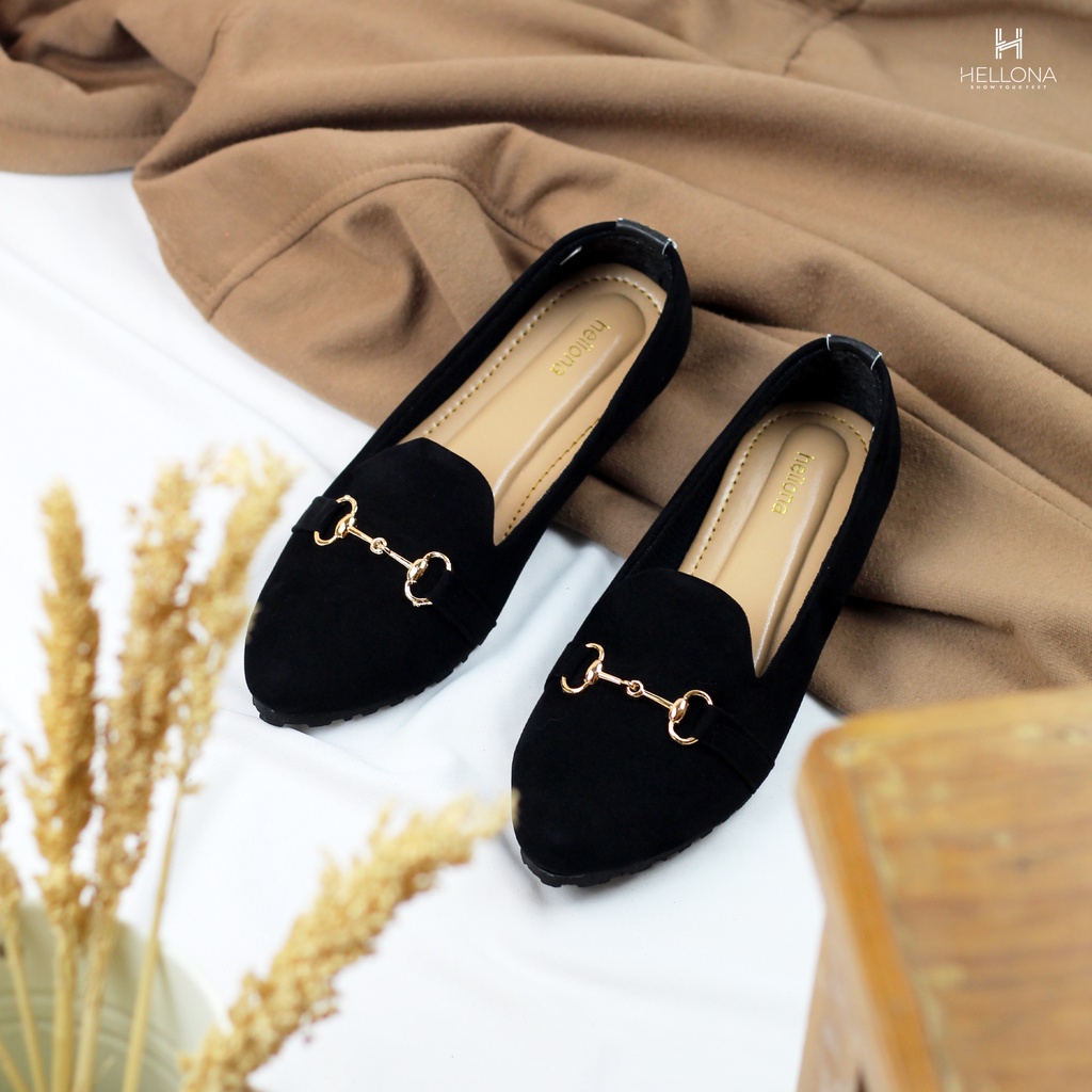Hellona Ayana Flatshoes Wanita Desain Simpel Warna Black