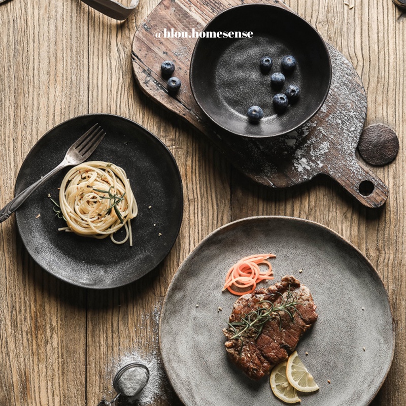 Piring Mangkok Keramik Aesthetic Hotel Modern Mewah Vintage Stone