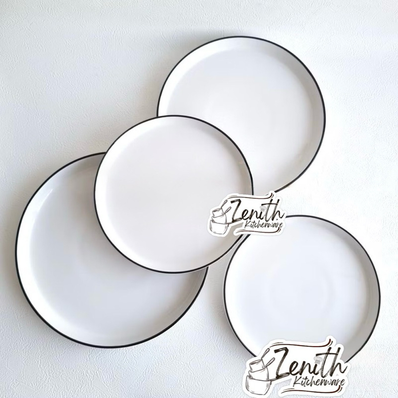 PIRING KERAMIK LIS HITAM/ PIRING ESTETIK/ PIRING PIZZA STEAK CAFE RESTORAN/ PIRING KERAMIK PORSELEN TANITI
