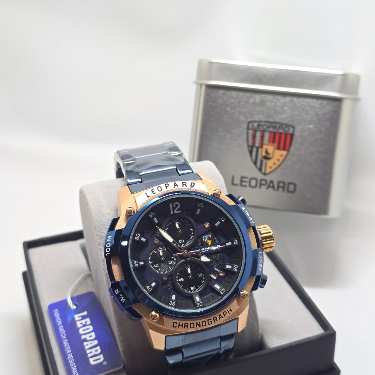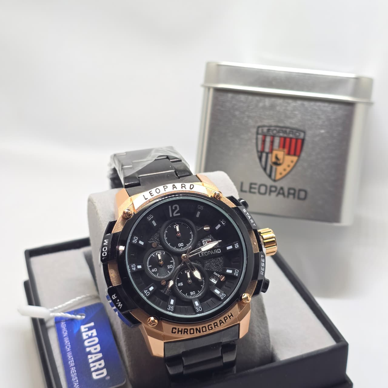 Jam Tangan Pria LEOPARD 3910 Original Analog Watches Rantai Stainless Steel Chrono Aktif Anti Air