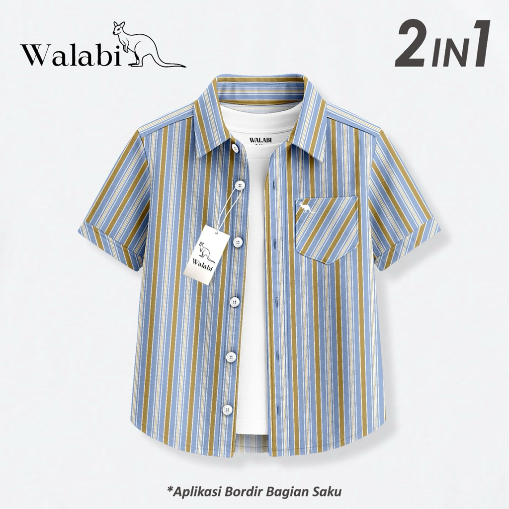 Kemeja Anak Laki Laki Kemeja Salur 2in1 Premiun Lengan Pendek Bordir utk usia 1-12Tahun by Walabi