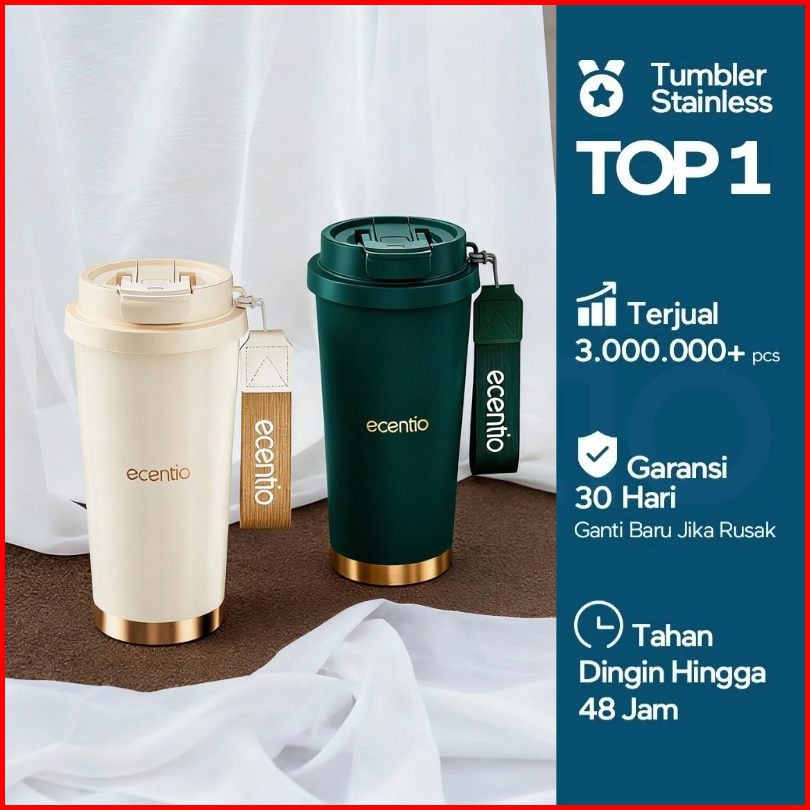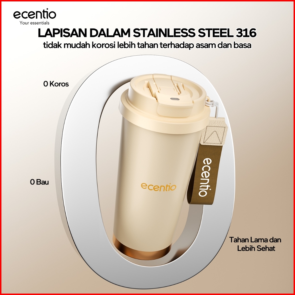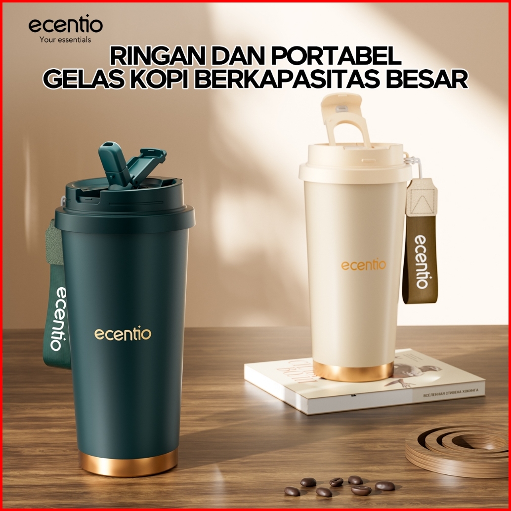 Ecentio Tumbler Kopi Aesthetic 530ml Tahan Panas Dingin 24 Jam Kado Ulang Tahun Hadiah Untuk Cowok Botol Minum Stainless