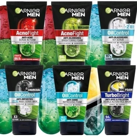 (BOSS) (Besar) GARNIER MEN FACIAL FOAM Acno Fight Scrub - Wasabi / Turbolight Oil Control Brightening Facial Foam 100ml