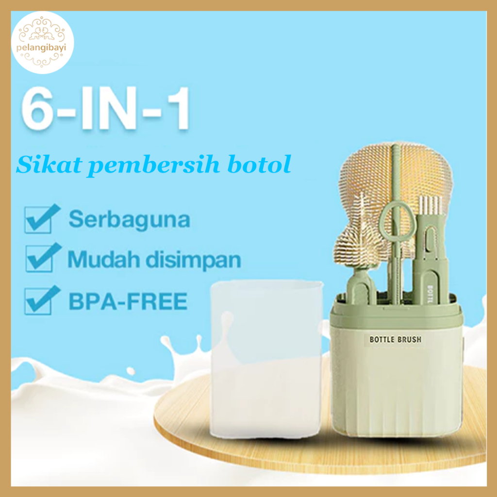 Sikat Botol Portable Sikat Botol 6IN1 Travelling Multifungsi Pembersih Botol Silikon